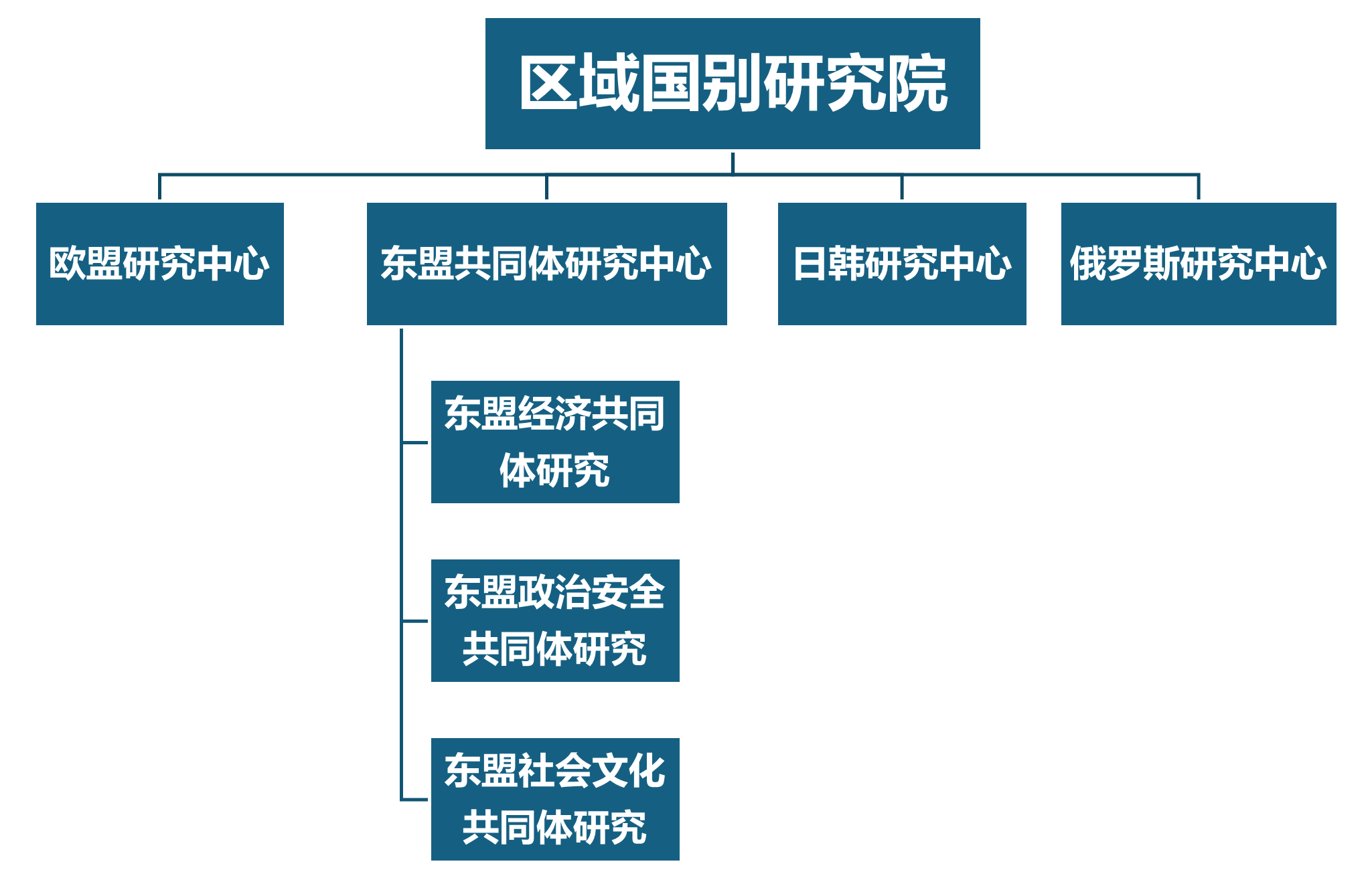 江西财经大学区域国别研究院为正院所级科研机构,以经济研究为特色,聚焦东盟,兼顾欧盟、日韩、俄罗斯等区域国别,设有4个研究中心:东盟共同体研究中心、欧盟研究中心、日韩研究中心和俄罗斯研究中心。东盟共同体研究中心下设3个研究方向:东盟经济共同体研究、东盟政治安全共同体研究、东盟社会文化共同体研究
