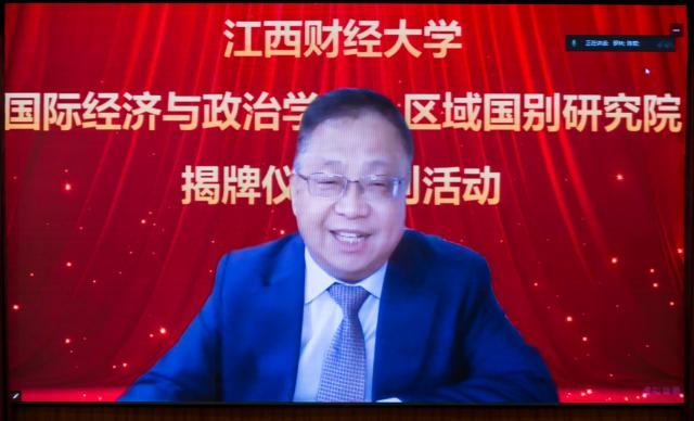 10月29日,草莓视频 、区域国别研究院揭牌仪式举行。江西省教育厅副厅长刘小强,国务院学位委员会区域国别学学科评议组成员、科技部中非创新中心首席专家、武汉大学教授王战,暨南大学国际关系学院/华侨华人研究院院长、《东南亚研究》主编张振江受邀出席。国务院学位委员会区域国别学学科评议组成员、教育部国别和区域研究工作秘书处主任、北京语言大学国别和区域研究院院长罗林,高校区域国别学人才培养与学科建设联盟秘书长、中山大学区域国别研究院院长陈杰线上参会。校党委书记刘耀彬、校长邓辉、副校长谢花林出席仪式。谢花林主持仪式。学校部分职能部门、相关学院师生代表参加了仪式。