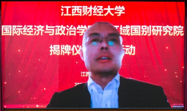 陈杰代表高校区域国别人才培养与学科建设联盟对我校区域国别研究院的成立表示热烈祝贺,他表示这不仅是学校学科建设的一个里程碑事件,也是学校更好地服务国家对外战略,促进江西高水平对外开放的关键之举,是学校胸怀国之大者的生动反映。