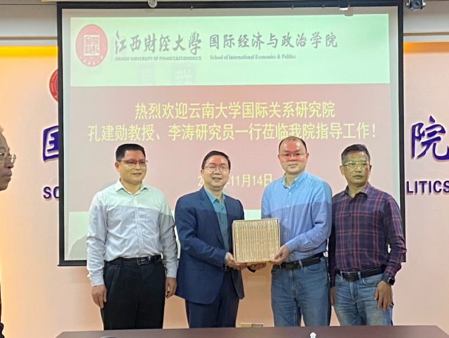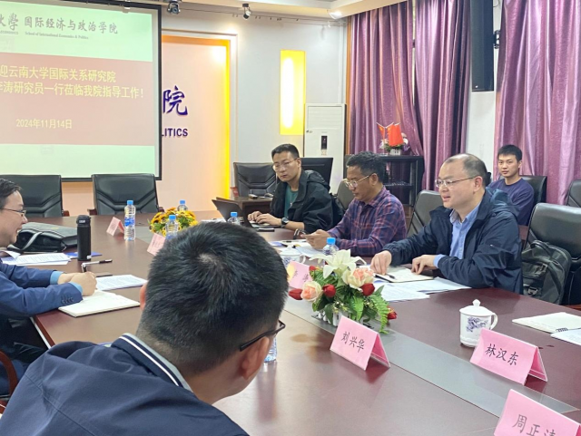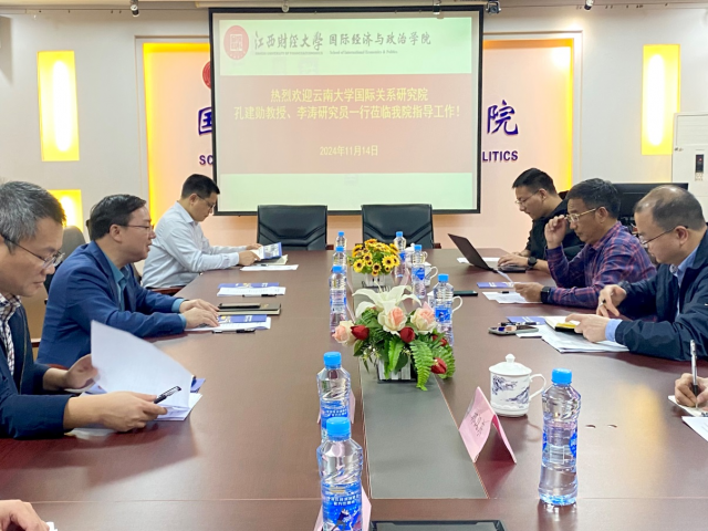 11月14日上午,云南大学国际关系研究院孔建勋教授、李涛研究员一行4人到访草莓视频 进行调研交流,草莓视频 吴朝阳院长、许统生教授、刘兴华教授、余昌龙副院长以及周正清博士参与座谈。
